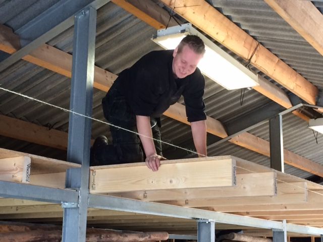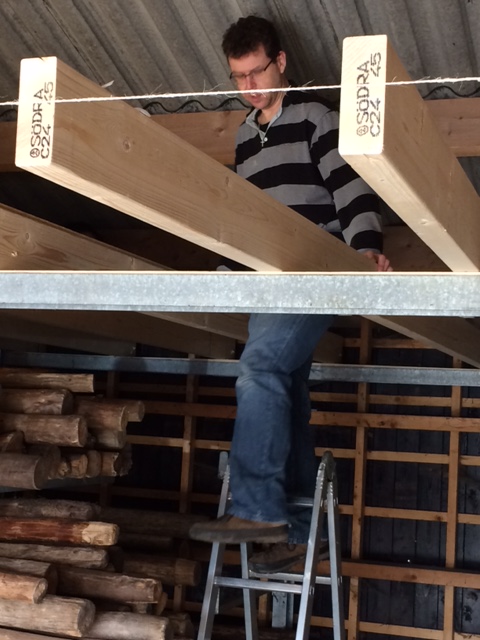 Het schilderwerk is echter niet het enige wat we gedaan hebben. Een aantal van ons zijn ook druk aan het werk geweest met het maken van een zolderverdieping in de schuur naast de blokhut. Hierdoor hebben we extra opslag ruimte voor materiaal, zodat er meer ruimte vrij is in de blokhut en de schuur ook weer goed begaanbaar is.